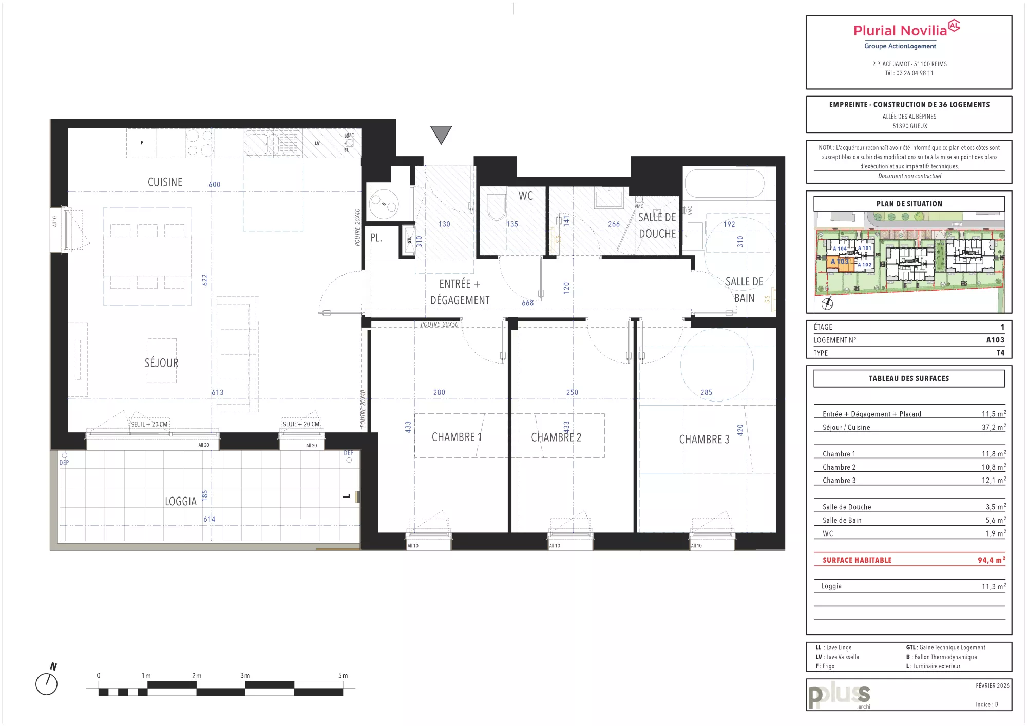 Appartement 4 pièces (94 m²), avec loggia de 11 m²