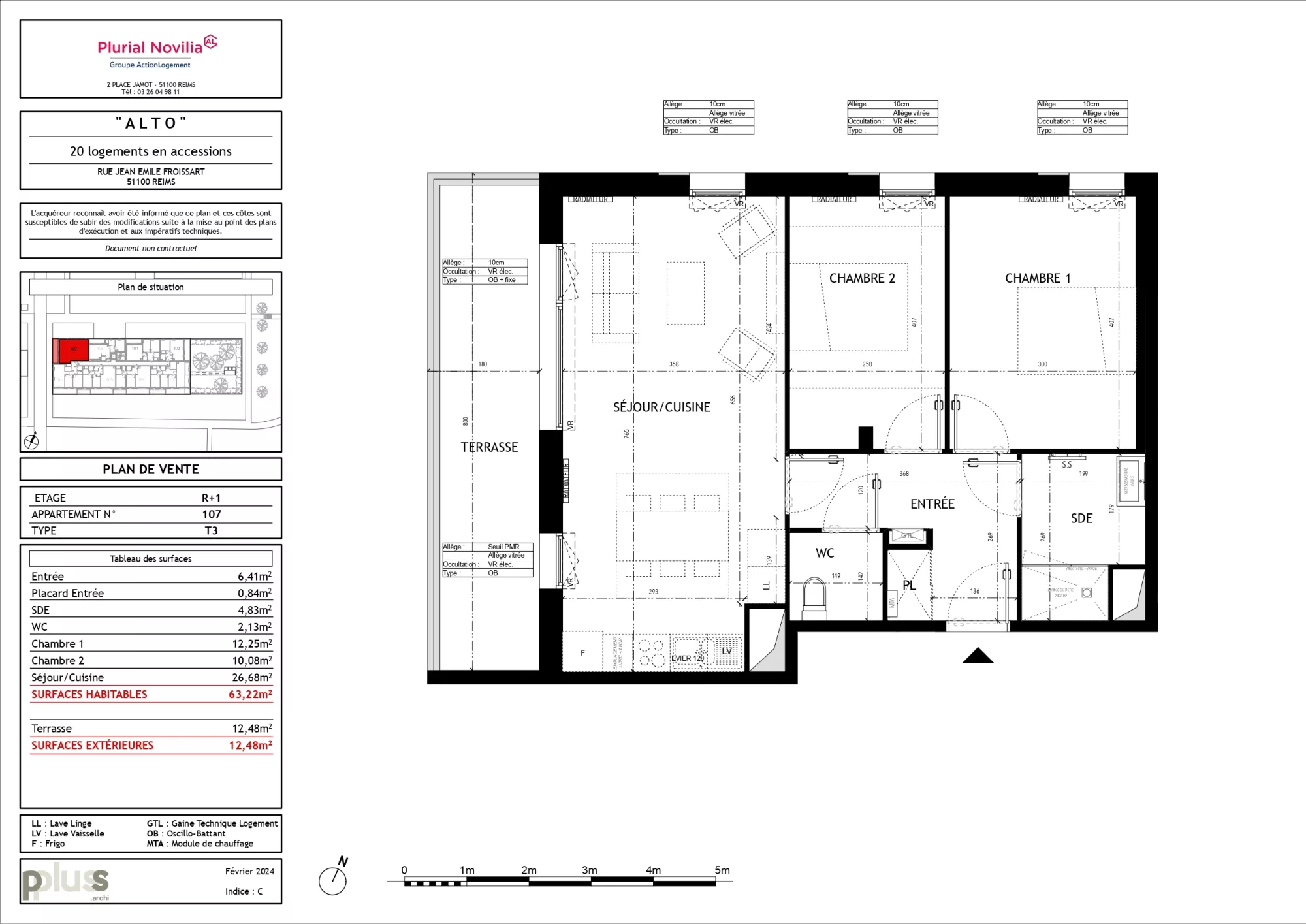 Appartement 3 pièces (63 m²), avec terrasse