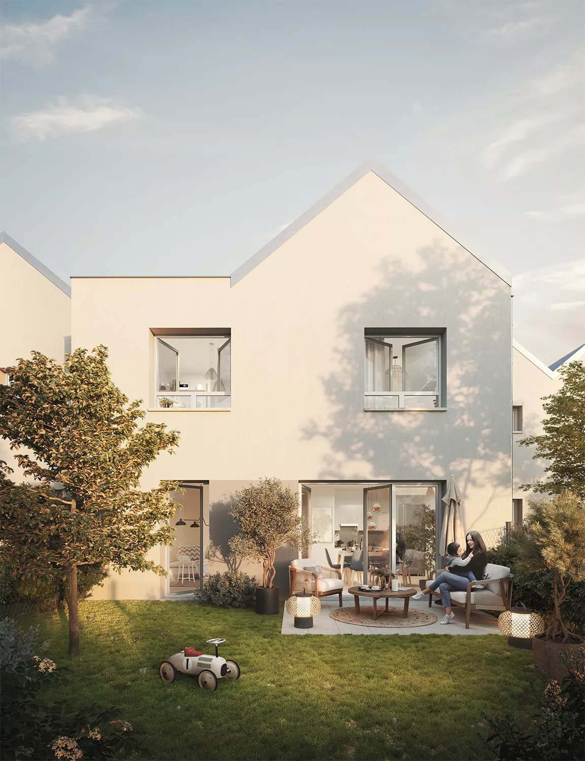 Les retraits et décrochés des façades habillées de briques rythment la rue et soulignent une architecture résolument moderne, d’inspiration industrielle. Baignés de lumière naturelle grâce à leurs larges ouvertures, les intérieurs ont été pensés dans les moindres détails pour satisfaire tous vos besoins. En cœur d’îlot, les espaces de vie sont prolongés par de charmants jardins privatifs, intimisés par le retrait des façades, les pare vues et les haies végétalisées.