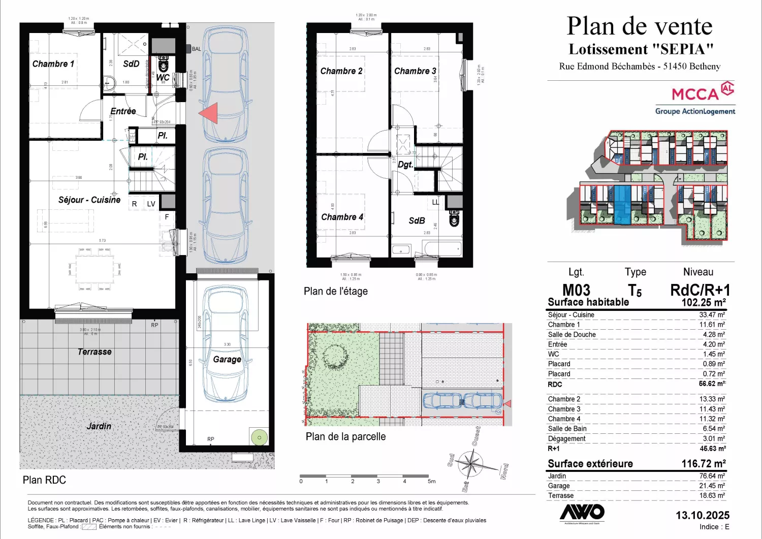 • 7 maisons à étage de 5 pièces (de 100 à 102 m²)